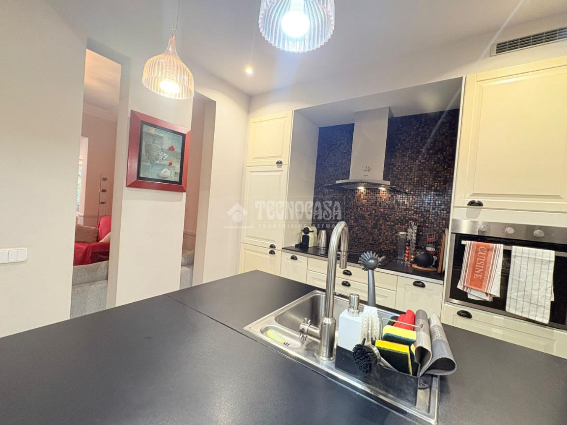 La cocina americana está completamente equipada y lista para que prepares tus platos favoritos. Desde la galería y el patio interior, podrás disfrutar de momentos de tranquilidad. Este piso también incluye aire acondicionado y calefacción independiente, asegurando un ambiente agradable durante todo el año. Los suelos de parquet y las carpinterías de aluminio con doble cristal aportan un toque moderno y eficiente.